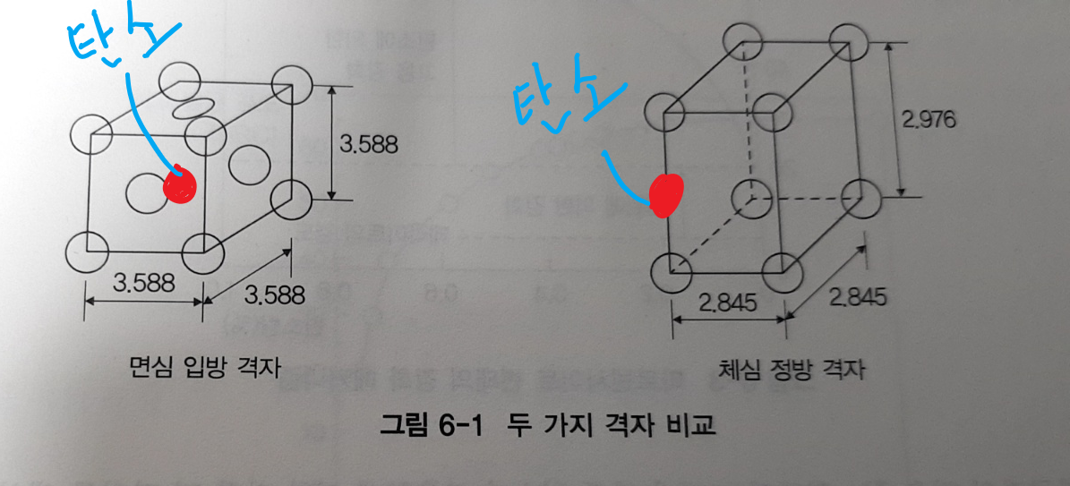 다시 제 블로그에 올려둔 Fe-C 상태도를 가지고 와서 설명해봐야겠네요. 철은 액체일 때 체심입방격자였다가 오스테나이트 상태일 때 면심입방격자, 그리고 다시 페라이트 상태일때 체심입방격자로 변합니다. 즉 원자 배열이 온도에 따라 변화된다는 것이죠. 이걸 더 쉽게 말씀드리면..