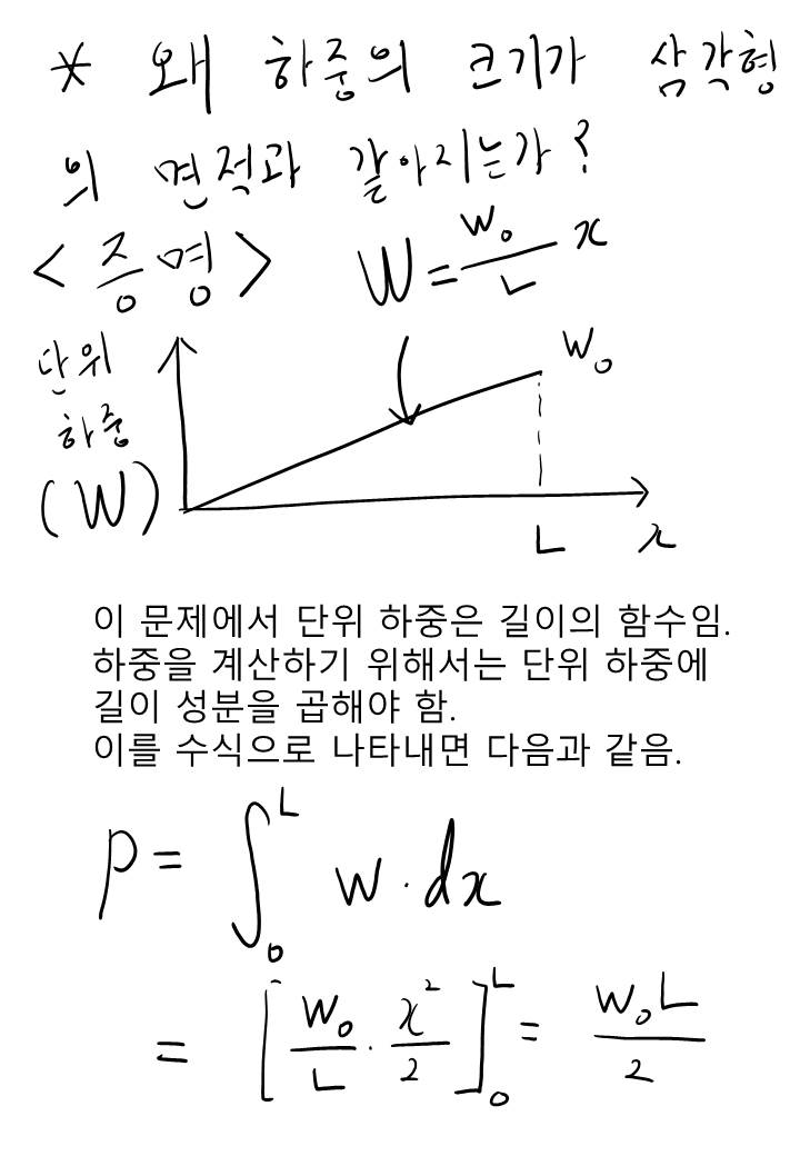 이렇게 수식으로 풀이하는 방법도 있겠으나, 단위하중은 단위로 표현하면 N/m 로 하중에 보의 길이를 나눈 값입니다. 즉, 1m 당 보가 받는 하중이란 말과도 같은것인데요. 공학적으로 보면 하중 단위가 되기 위해서는 보의 길이와 같이 어떤.. 길이와 관련된 수치를 곱하면 하중이 됨을 짐작해볼 수도 있습니다.