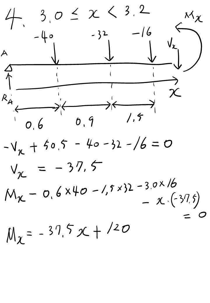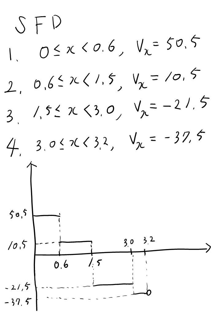하지만 이 유형은 S.F.D랑 B.M.D 그려내는게 많이 귀찮고 번거롭습니다. 왜냐면... 집중 하중이 3개나 되다보니 이 하중 구간별로 나눠야하는데 그 구간이 무려 4개나 됩니다. 또한... B.M.D 그릴때도 똑같이 4개 구간으로 나뉘게되니 한 번에 처리해봅시다.
